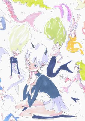 For zweikommasieben, Shilonosova contributed a number of drawings—and, unsurprisingly, they are clearly influenced by a manga aesthetic. The drawings appear to be character studies from her music videos, thereby offering another opportunity to delve into the wonderful world of Kate NV. If you have ever taken this plunge, you’ll soon realize, it’s not that easy to find your way back out.