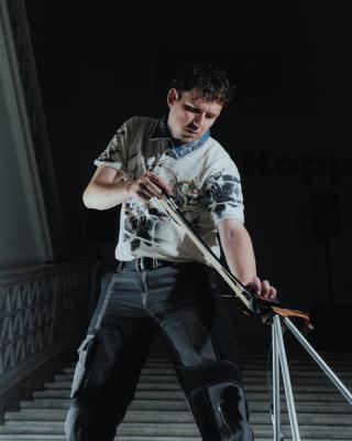 Koch’s two-year practice of site-specific, solo live sound performances (under the title Room Service) where digitally rendered compositions are amplified by the surrounding acoustic frequencies or architectural matter, unfold in a series of live instrumentalisations by the artist. A compelling (and ongoing) series of collaborations across artistic disciplines precede these solo performances. Examples include: Such Sweet Thunder, a stage performance at the intersection of dance, music, and sculpture, with dancer and choreographer Thibault Lac and visual artist Tore Wallert; terratones.fm, an ongoing sonic ecology project with his sister, artist Dominique Koch; as well as multiple projects across music, theater, and installation with multidisciplinary artist PRICE (Mathias Ringgenberg). The film Drii Winter (2022), for which Koch designed sound and music, and which was directed by Michael Koch (another sibling), was awarded best feature film at the Swiss Film Awards 2023 and was the official Suisse submission for the Oscars Academy Awards 2023.